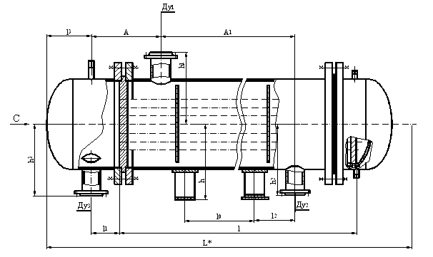 трубному пространству, с деталями для крепления тепловой изоляции.